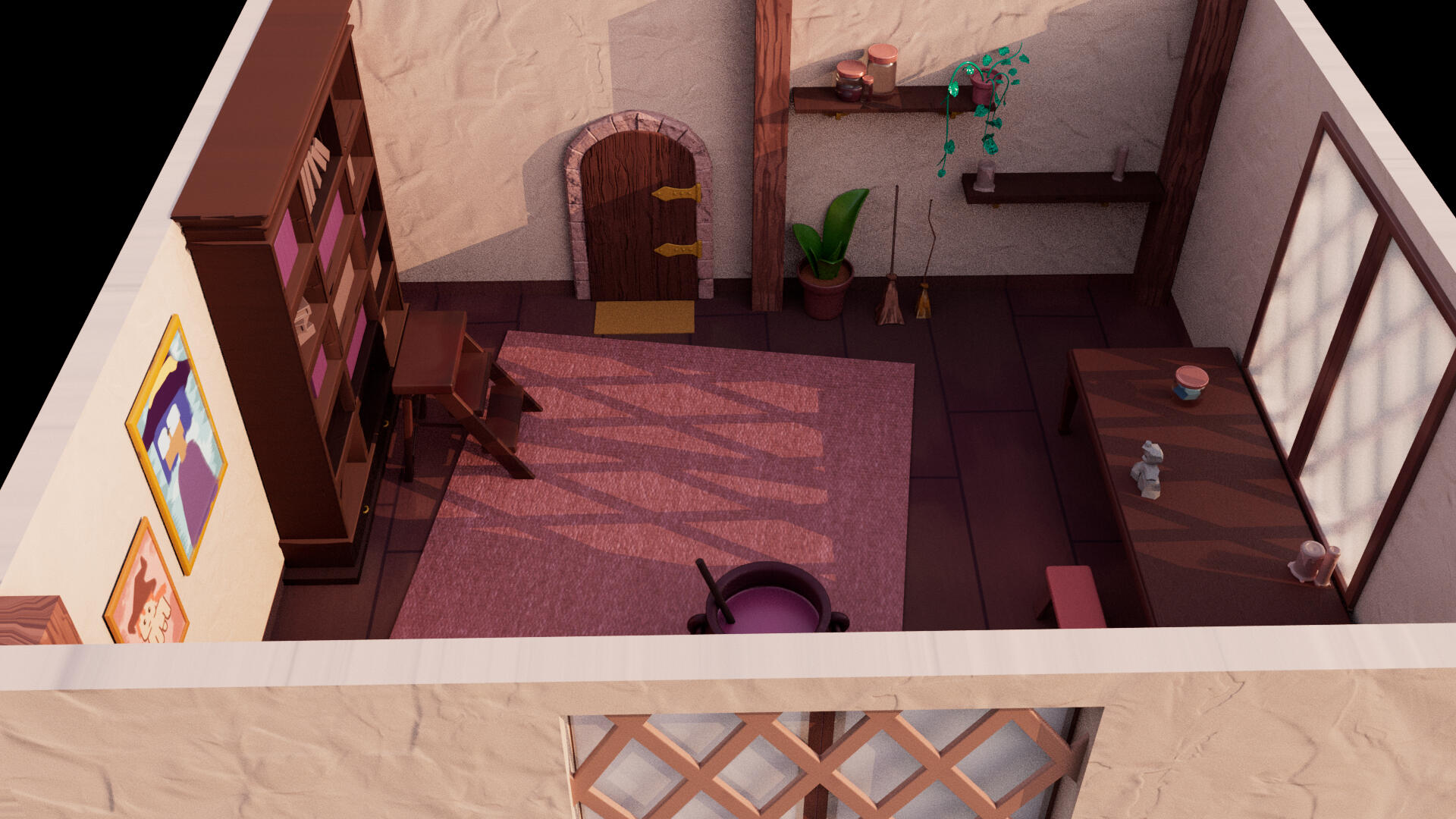 -Modelled all the CG assets in Blender for the game Alcazar , which included a rigged Spider model, low poly character and hard surface models of the rooms and props in the game.