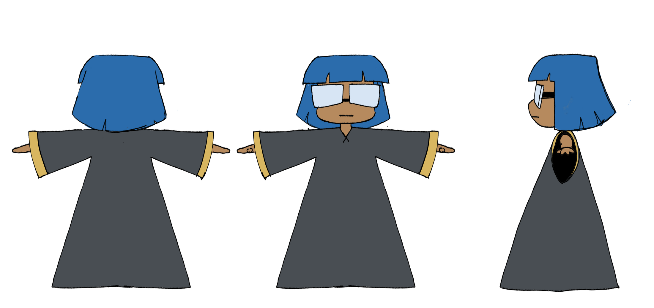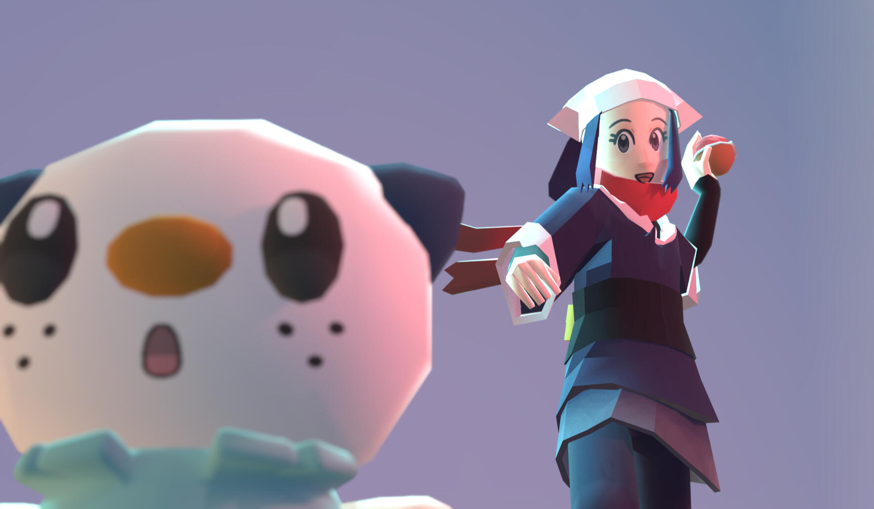 She's very energetic and playful as a character, so she has controls on her pigtails and hat to have more secondary animation in her movements to convey that. Along with that, her expressions are made with a variety of Blendshapes.
